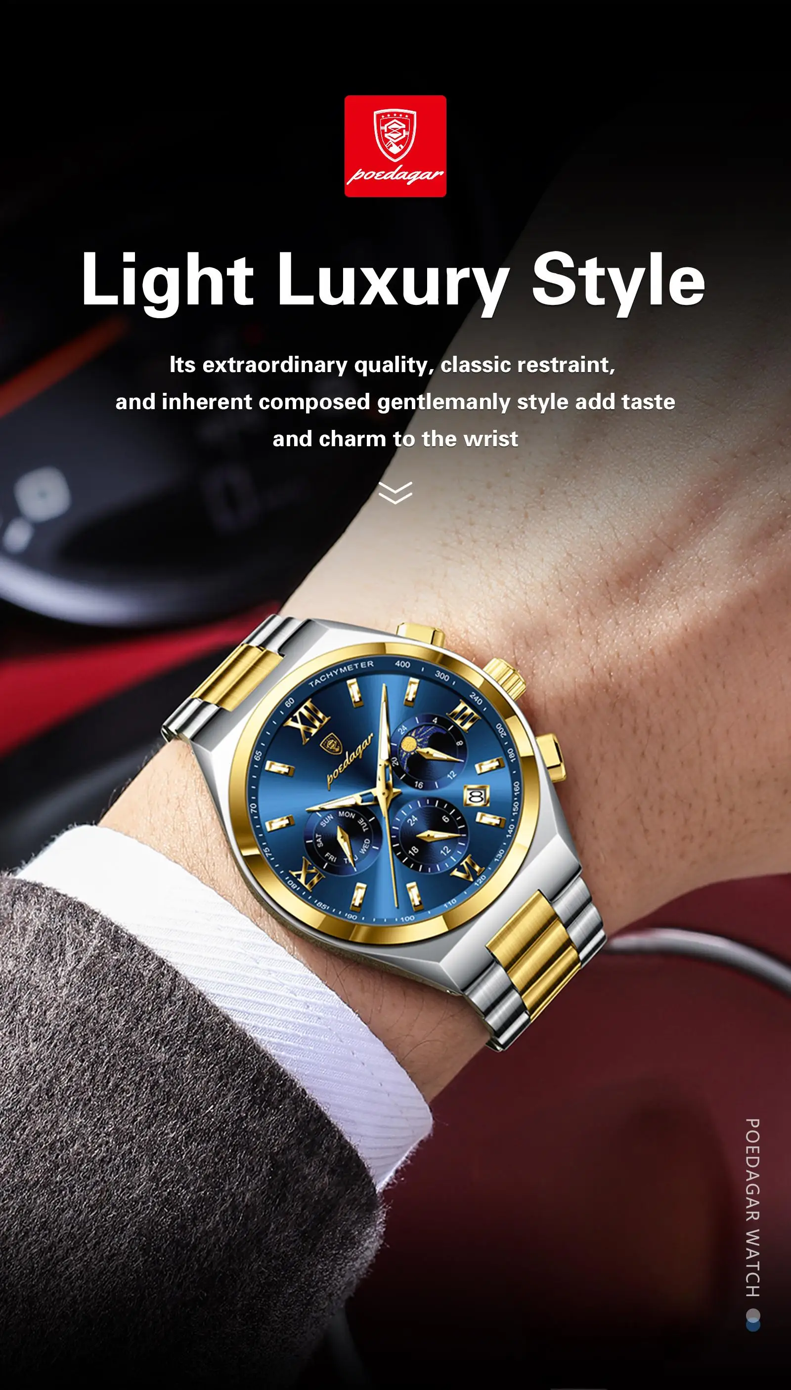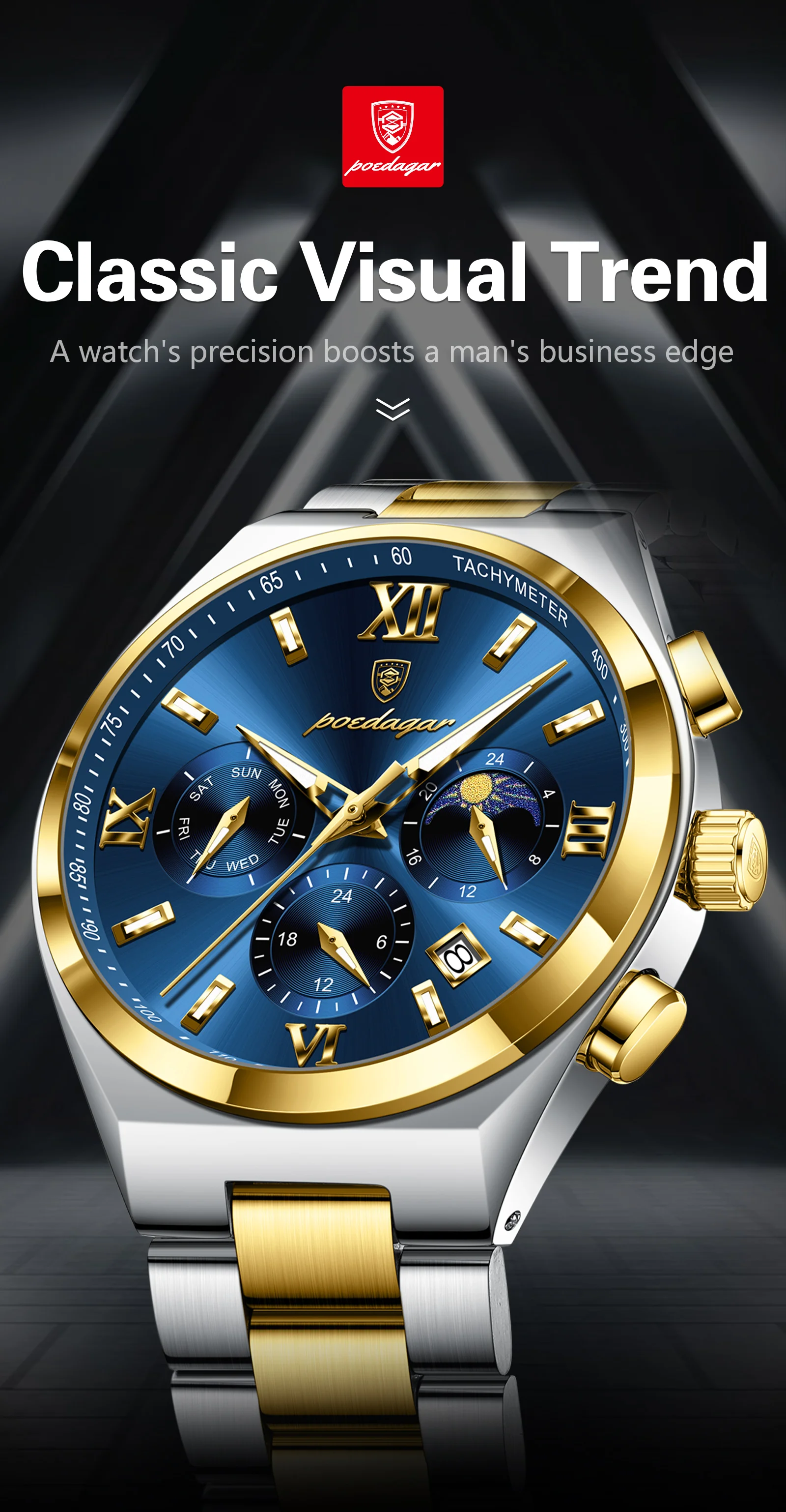 Its multi-dial layout integrates chronograph, calendar and other practical functions, meeting business professionals' strict time-management demands.